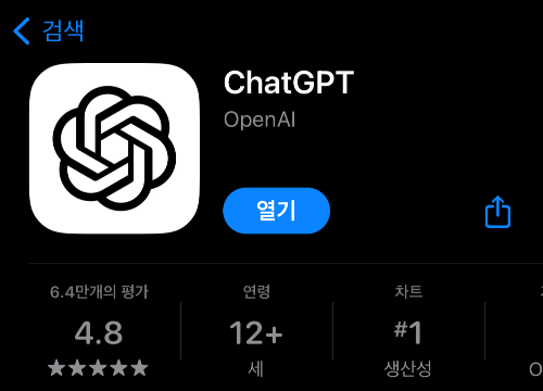 저는 아이폰유저라 아이폰을 기준으로 설명드리겠습니다. Appstore에 들어가서 ChatGPT를 치면 아래와 같은 어플을 다운로드할 수 있습니다.