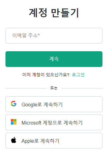 저는 기존 사용자라 이런 화면이 뜨는데, 처음 접속하신 분들은 멘트가 조금 다를 겁니다.